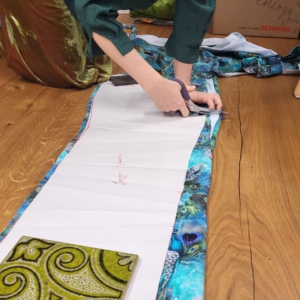 auf den Stoff gezeichnet , geschnitten und genäht zur Anprobe.